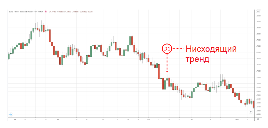 Можно увидеть 4-часовую динамику EUR/NZD в медвежьей зоне (см. выше).