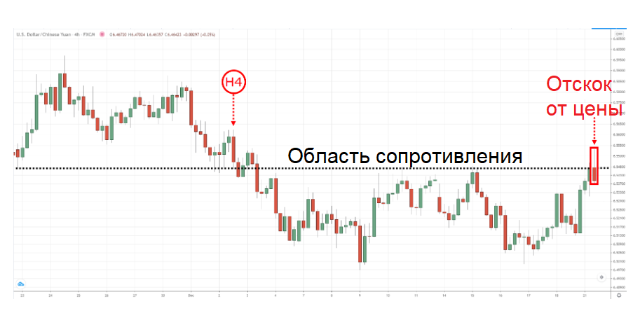 Однако это не все — зона сопротивления на 4-часовом интервале тоже совпадает с рыночной структурой (если ориентироваться на 20МА) на дневном графике.