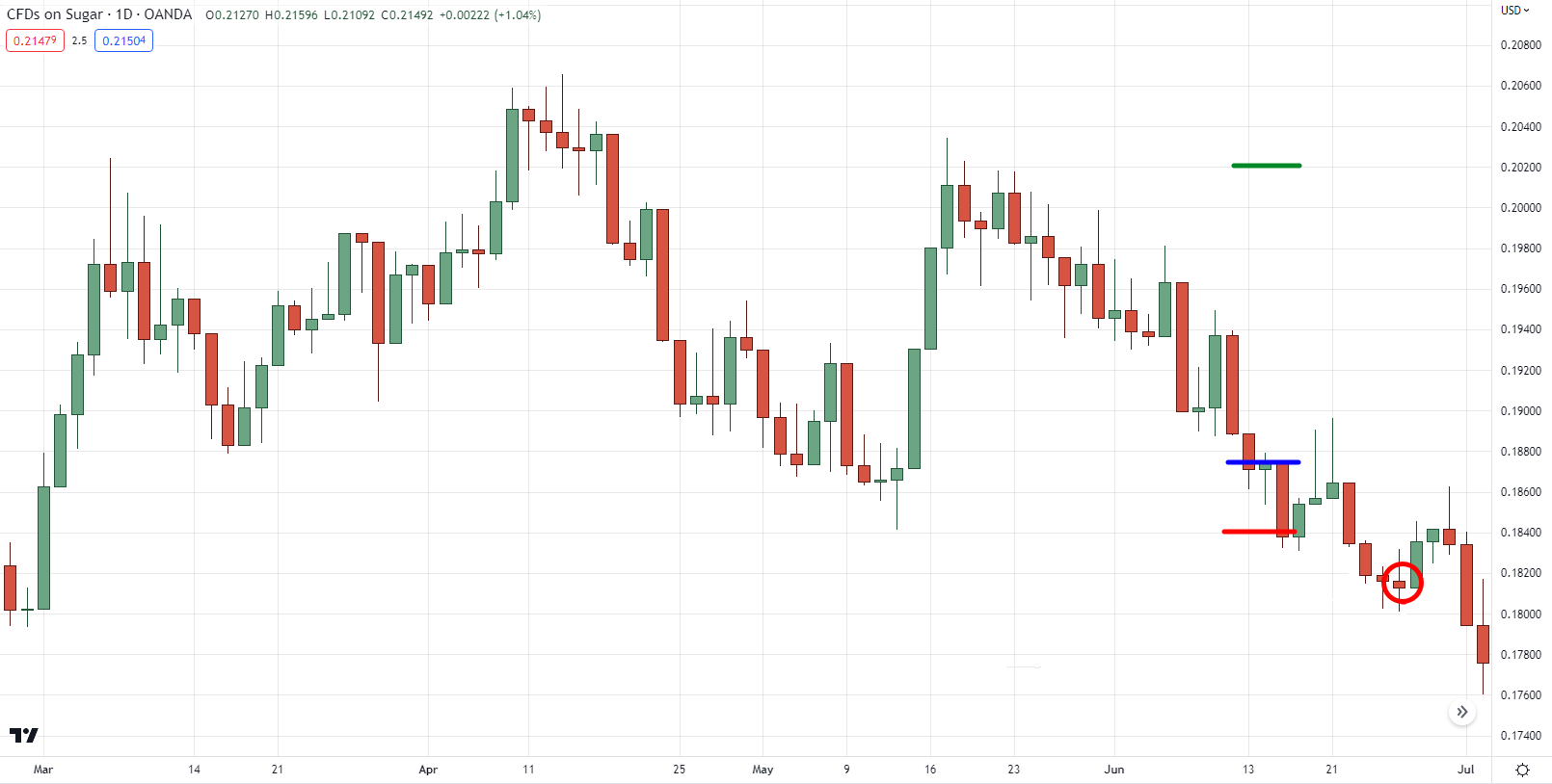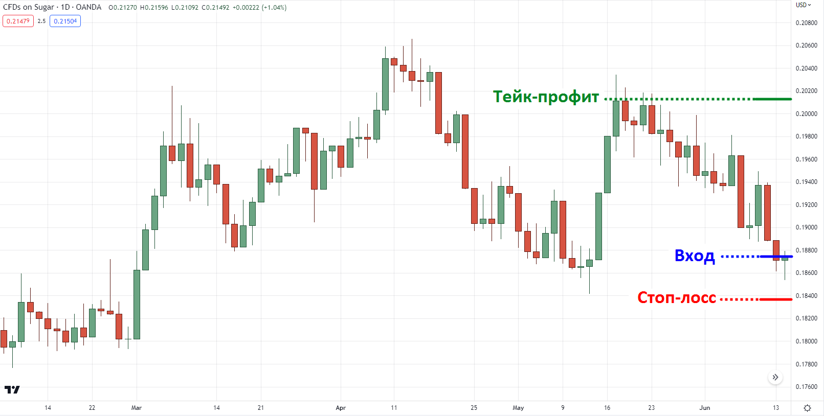 Конечно, еще можно рассмотреть возможность входа в рынок на открытии следующей свечи со стоп-лоссом всего на одну свечу ниже минимального значения. Но здесь мы решили подробнее рассмотреть именно вход с использованием пробоя в качестве триггера для входа.