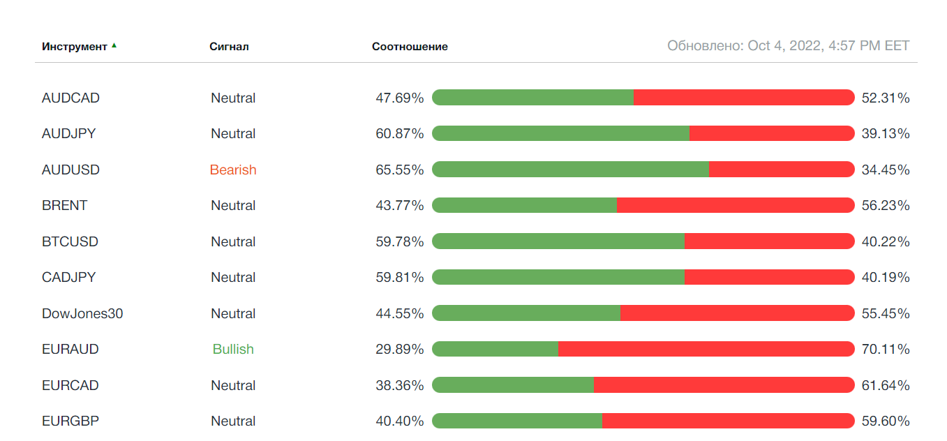 Советуем всем трейдерам использовать удобный и наглядный индикатор настроений от AMarkets, который показывает изменение настроений игроков по разным валютным парам и другим активам в режиме реального времени.