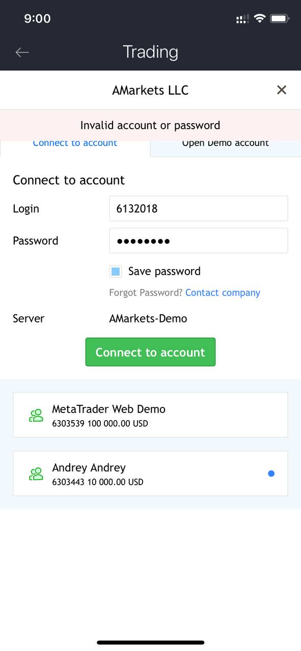 - Счет уже неактивен. Если вы не используете демосчет в течение длительного времени, он автоматически перемещается в архив. Вы можете подключить новый счет, перейдя в раздел «Торговые счета» через иконку «Настройки» в нижней панели экрана.